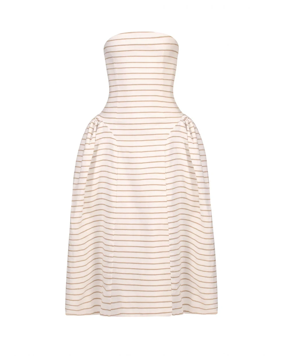 Our Dress is crafted from soft, breathable cotton for ultimate comfort. This strapless dress has a fitted bodice that accentuates your figure and flows into a gathered hip, mid-length skirt. Its bold minimalist design highlights your natural curves. Perfect for dreamy summer days.